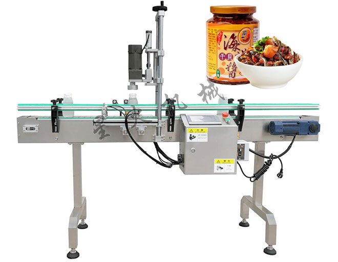 6、瓶裝海鮮醬封口機自動化程度高,旋蓋速度非?,并且旋蓋非常牢固,這款設備適合個企業的生產線使用。